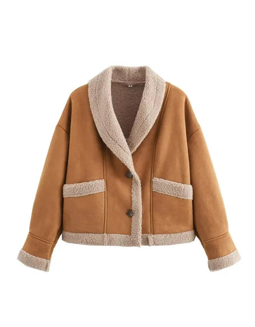“Retro wollen damesjas met reverskraag – losse pasvorm